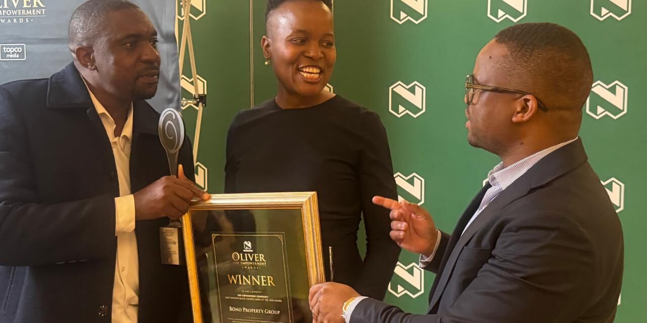Congratulations to our Group CEO “Mrs Patricia Tshitema” and the “Bono Property Group Team” on Their Win at the 2025 Nedbank Oliver Top Empowerment Awards last night. It is with immense pride and admiration that we celebrate our Group CEO and the entire team at BPG team for this prestigious recognition at the 2025 Nedbank Oliver Top Empowerment Awards — South Africa’s leading platform honouring transformation, empowerment, and inclusive excellence in business.